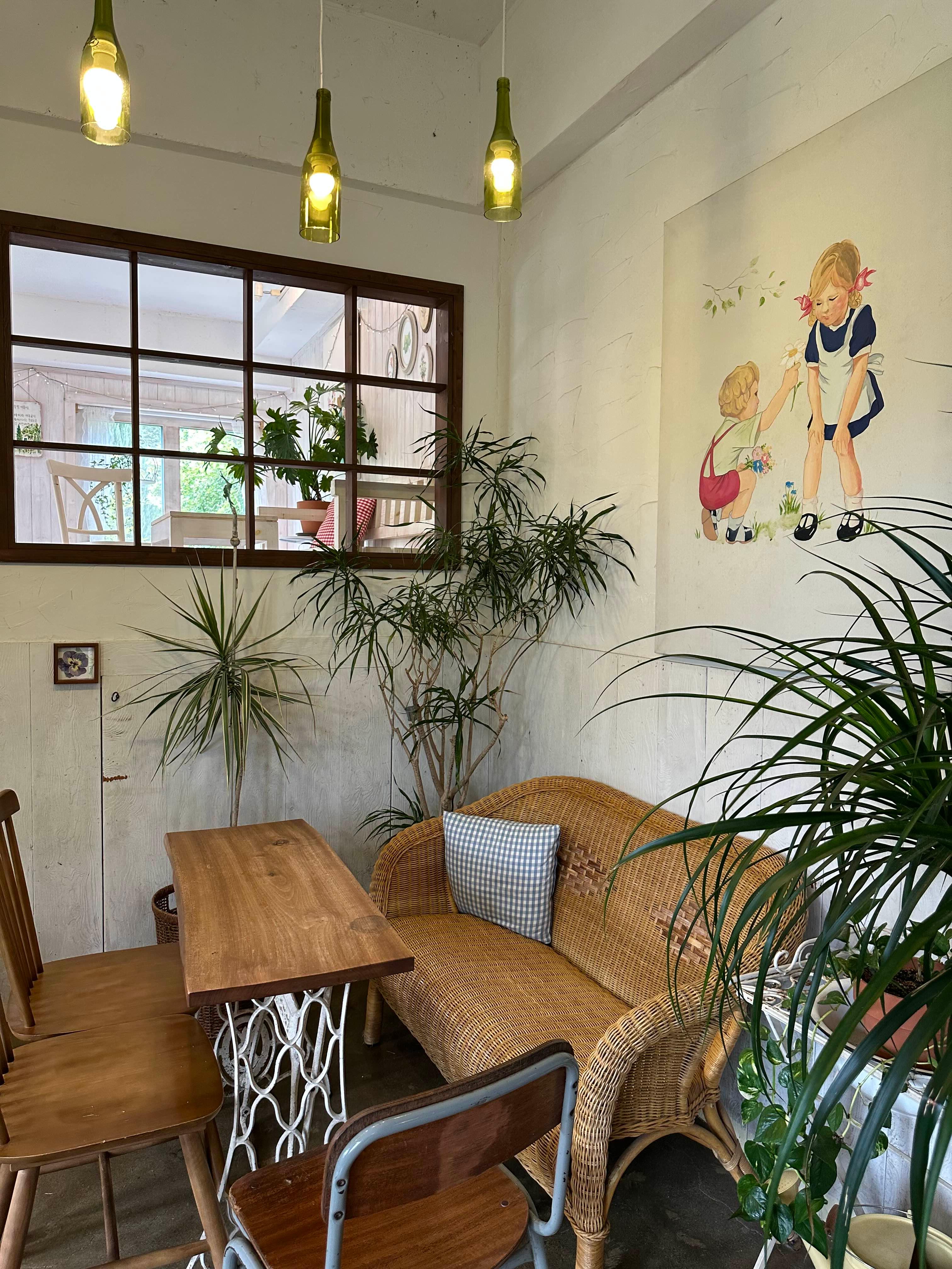 카페내부에 소품과 식물들이